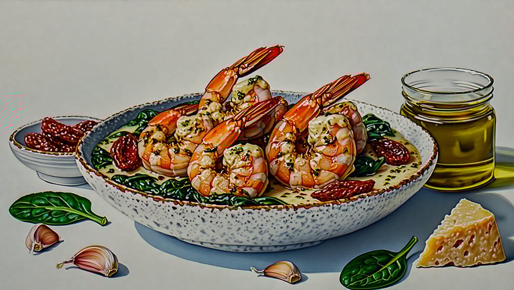 Cream-based sauces are a keto eater’s secret weapon. This dish, inspired by rustic Tuscan flavours, wraps juicy shrimp in a velvety garlic cream sauce, studded with earthy spinach and tangy sun-dried tomatoes. It feels indulgent yet is perfectly aligned with ketogenic macros: high fat, moderate protein, and very low carbs.