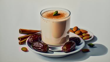 A creamy, spiced Mediterranean tonic blending dates, almond milk, cinnamon, and cardamom for a naturally sweet, nutrient-rich drink. This luscious beverage bridges ancient trade routes and modern wellness with every velvety sip.