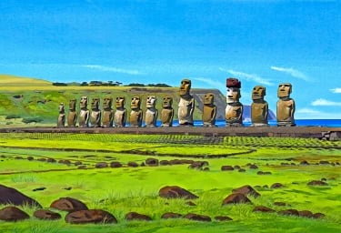 Far out in the vast South Pacific, on a volcanic speck called Easter Island (known locally as Rapa Nui) fifteen colossal stone figures stand side by side like timeless guardians. These are the Moai of Ahu Tongariki, statues that have silently watched over the island’s heart for centuries, their solemn faces fixed toward the rising sun as if keeping ancient secrets just out of reach.